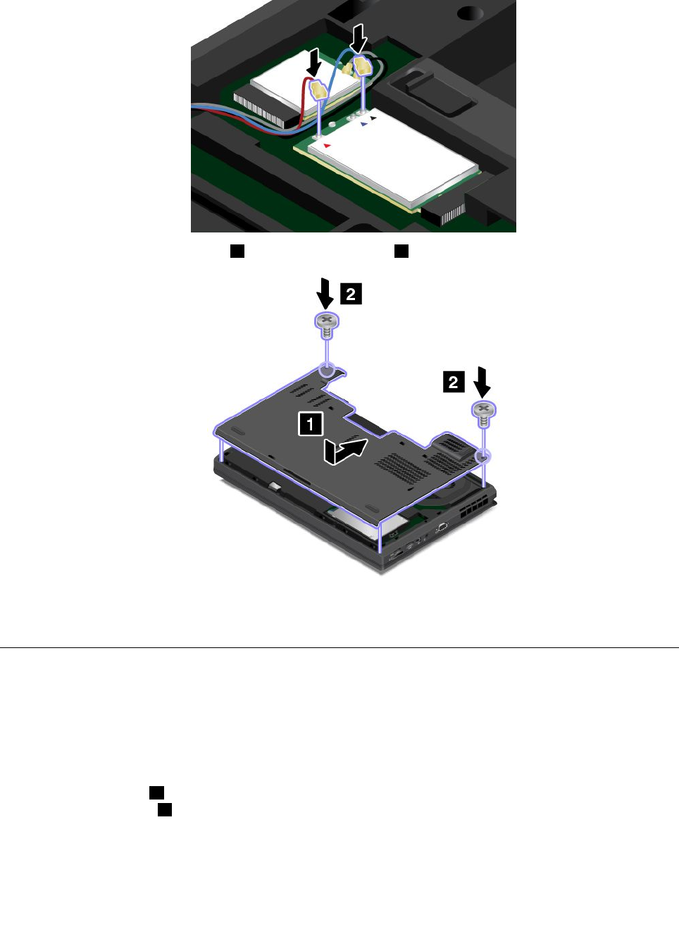 9.ConnecttheantennacablestothenewwirelessWANcard.Ensurethatyouconnecttheredcableto