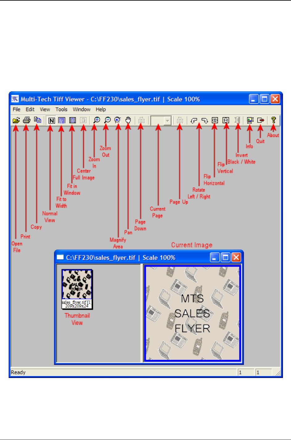 The Multi-Tech Tiff Viewer program has a variety of features that enhance the viewing of fax messages
