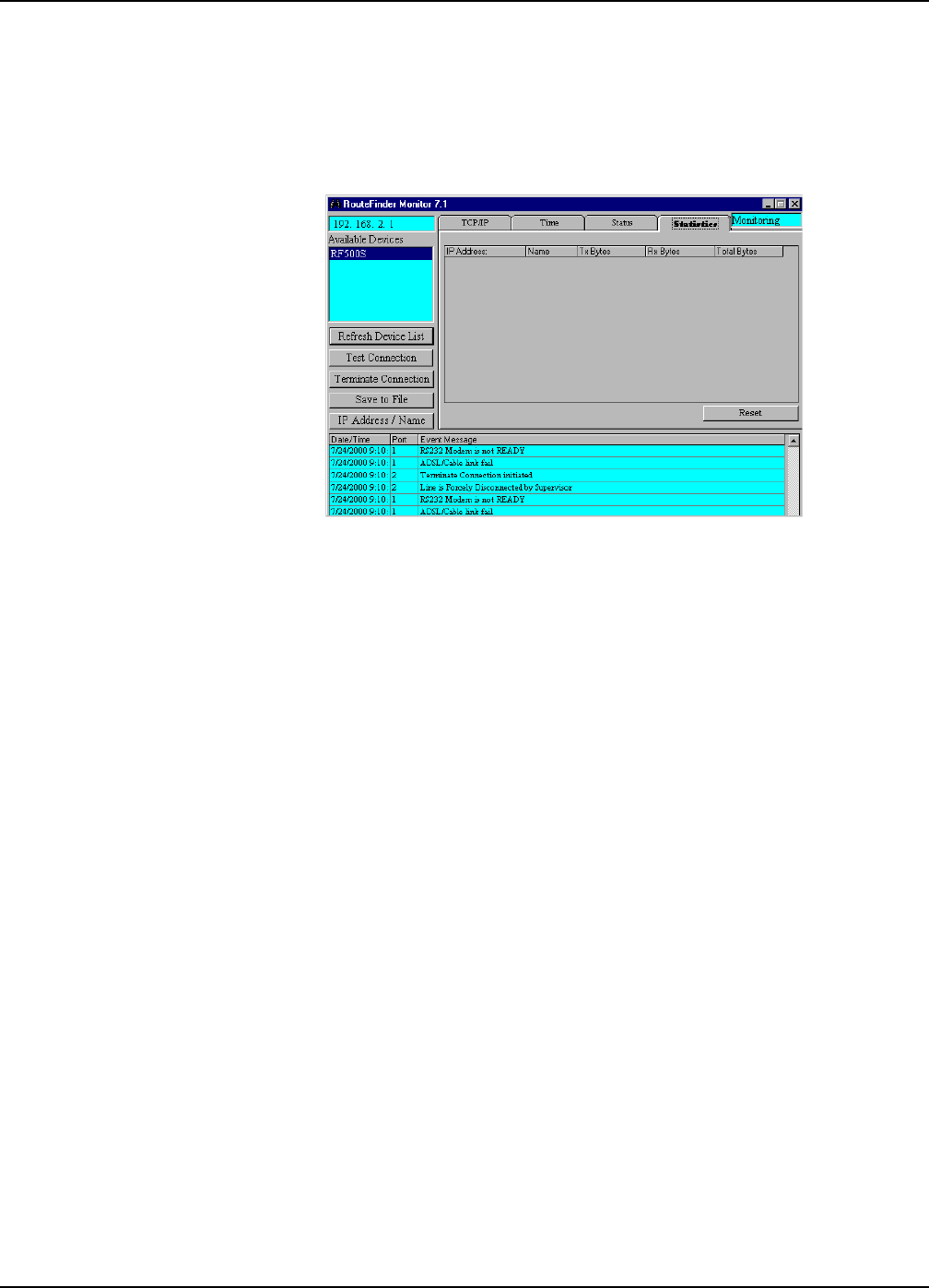 1. From the RouteFinder Monitor dialog box, click the